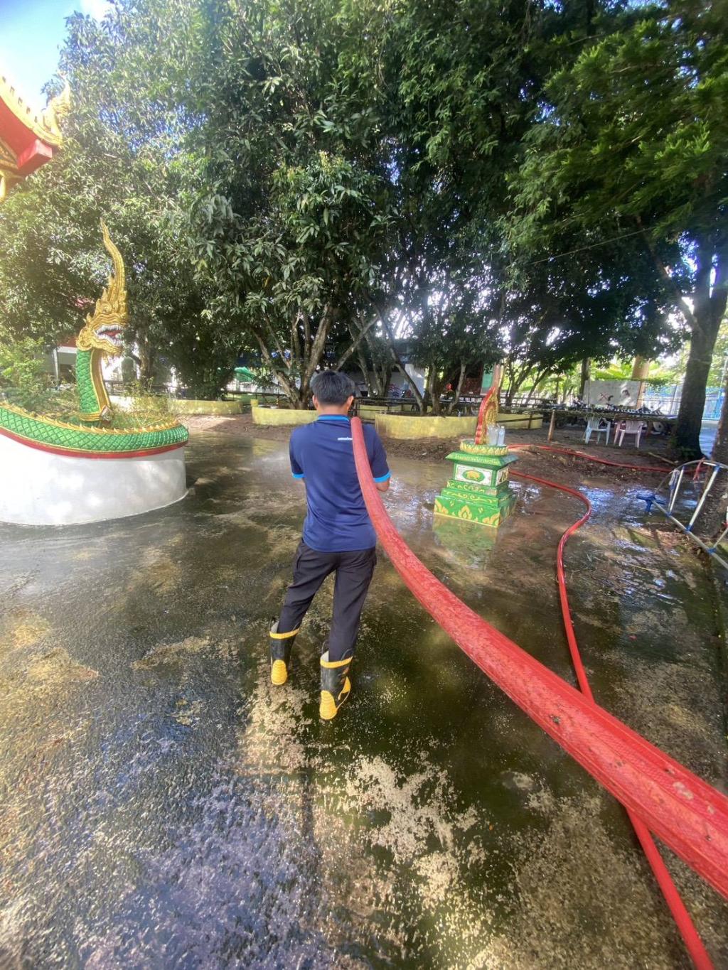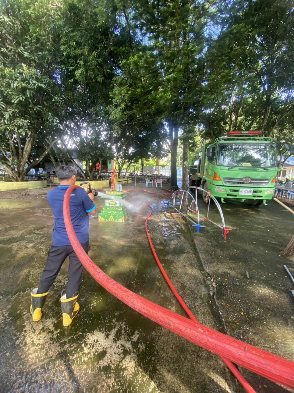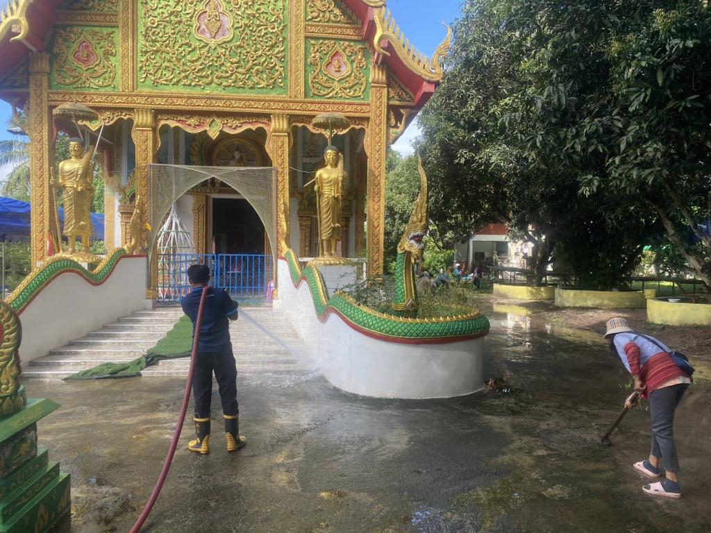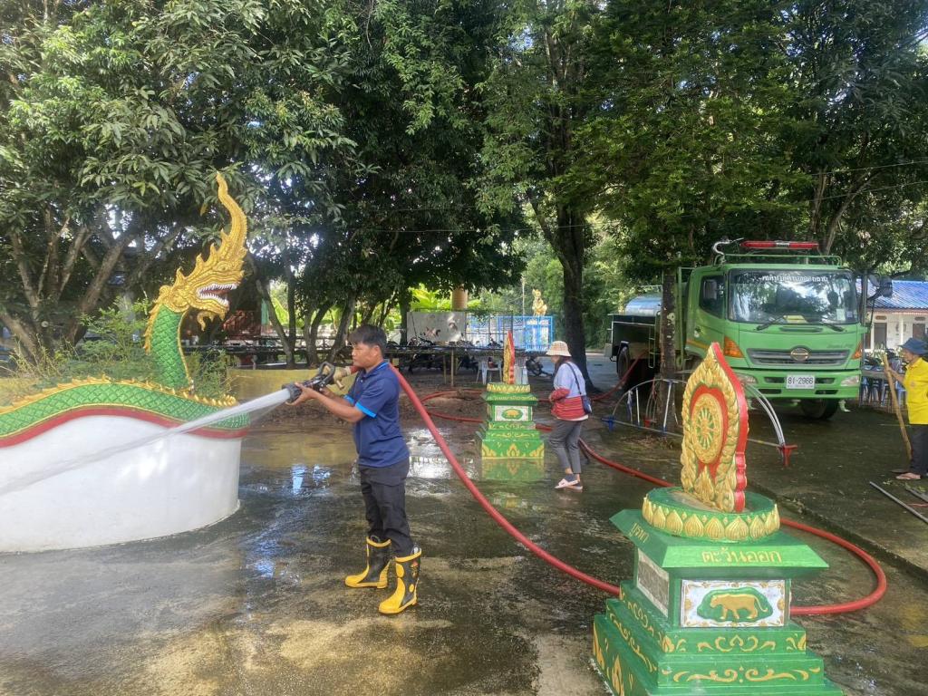 งานป้องกันและบรรเทาสาธารณภัยนำรถบรรทุกน้ำอเนกประสงค์พร้อมเจ้าหน้าที่ประจำรถออกให้บริการฉีดน้ำล้างทำความสะอาดบริเวณวัดสันทรายงาม หมู่ที่ 3 ตำบลดอยลาน ร่วมกับประชาชนในพื้นที่ ตามที่ได้รับการร้องขอจากผู้นำในหมู่บ้านเพื่อเตรียมความพร้อมการจัดงานบุญสลากภัตร์