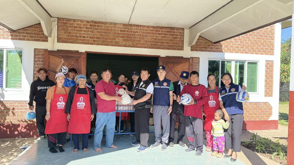 นายกจำนงค์ ชัยชนะ นายกเทศมนตรีตำบลดอยลาน ประธานสภาเทศบาล และสมาชิกสภาเทศบาล เป็นตัวแทน ท่าน สส ยิ้ม วิสาระดี เตชะธีราวัฒน์ มอบน้ำดื่ม ผ้ากันเปื้อน และ อุปกรณ์กีฬา ให้กับพี่น้องอาข่าในชุมชน หมู่บ้านใหม่น้ำเย็น หมู่ที่ 9 ต.ดอยลาน อ.เมืองเชียงราย จังหวัดเชียงรายเพื่อใช้ในกิจกรรมกินข้าวใหม่ ในวันที่ 22 พฤศจิกายน 2568