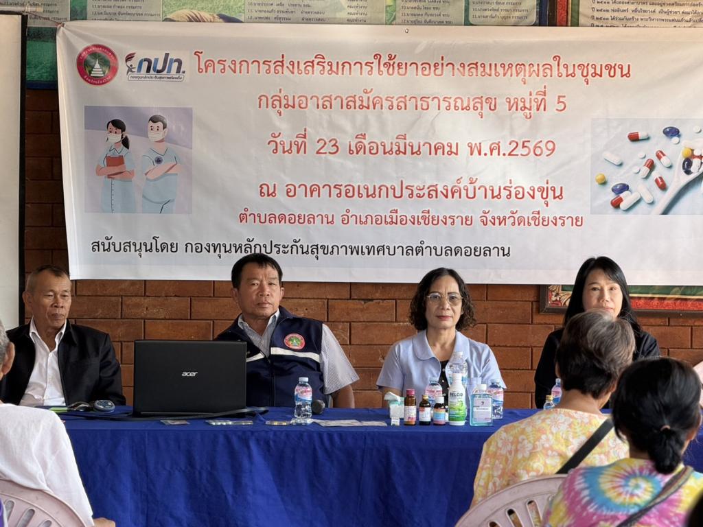 ดำเนินโครงการ การใช้ยาอย่างสมเหตุผลในชุมชน?บ้านร่องขุ่นหมู่ที่ 5 ตำบลดอยลาน อำเภอเมืองเชียงราย จังหวัดเชียงราย งบประมาณสนับสนุนจากกองทุนหลักประกันสุขภาพเทศบาลตำบลดอยลาน