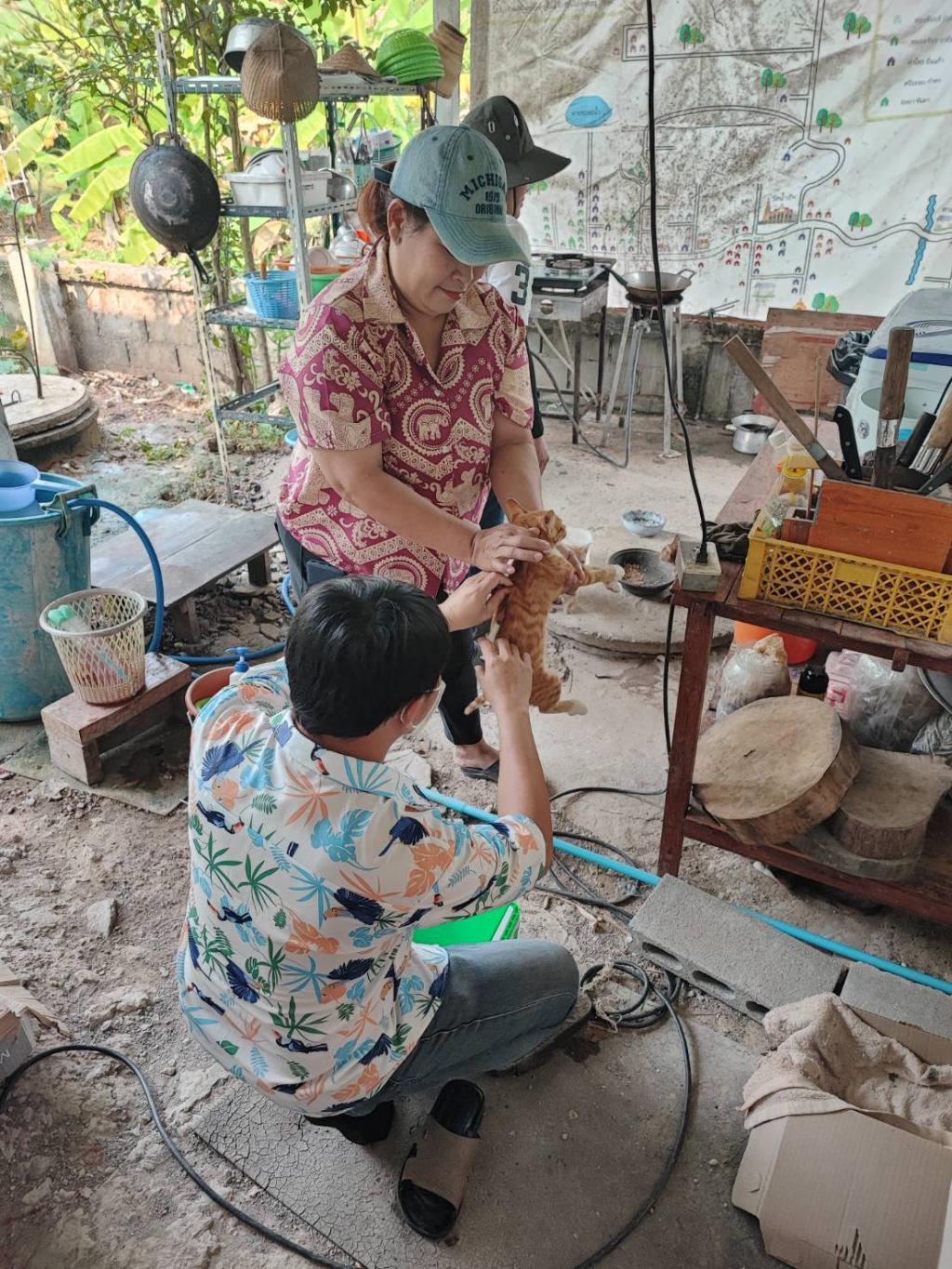 งานเกษตร ออกฉีดวัคซีนป้องกันโรคพิษสุนัขบ้า ให้กับสุนัขและแมว บ้านใหม่น้ำเย็น