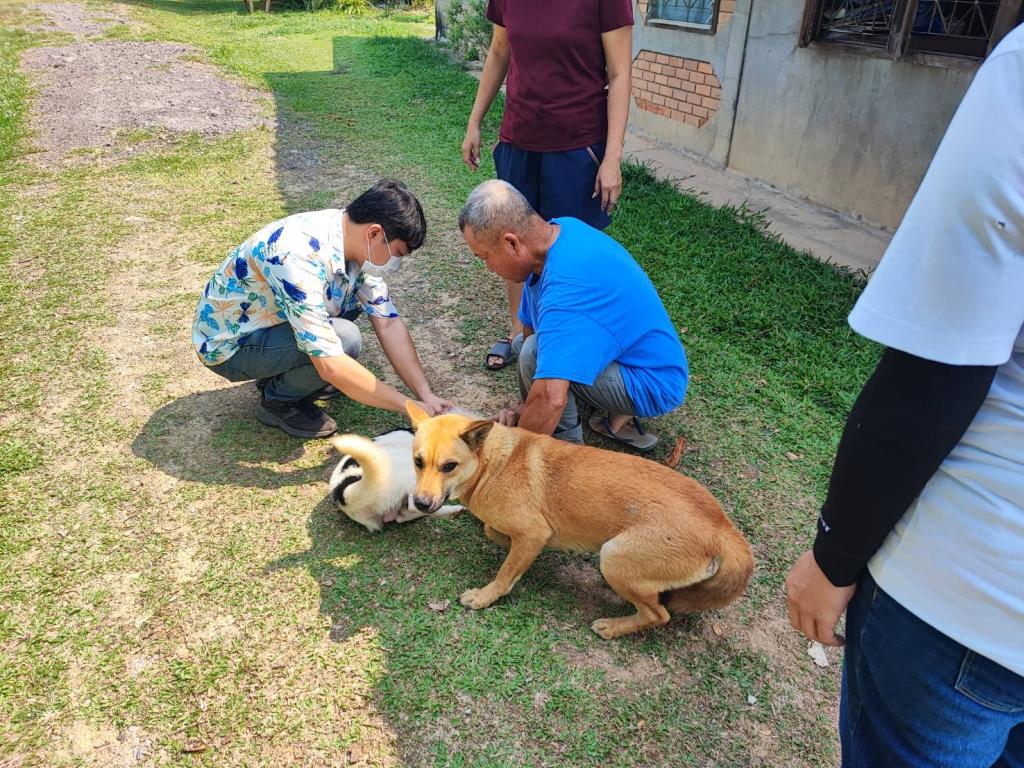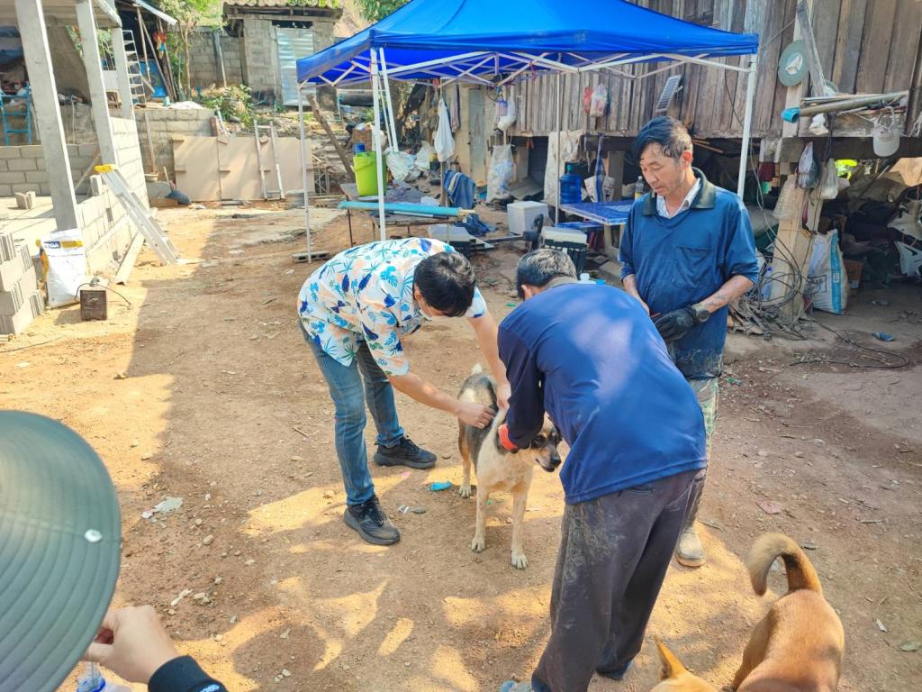 งานเกษตร ออกฉีดวัคซีนป้องกันโรคพิษสุนัขบ้า ให้กับสุนัขและแมว บ้านใหม่น้ำเย็น หมู่ที่ 9 ตำบลดอยลาน อำเภอเมืองเชียงราย จังหวัดเชียงราย