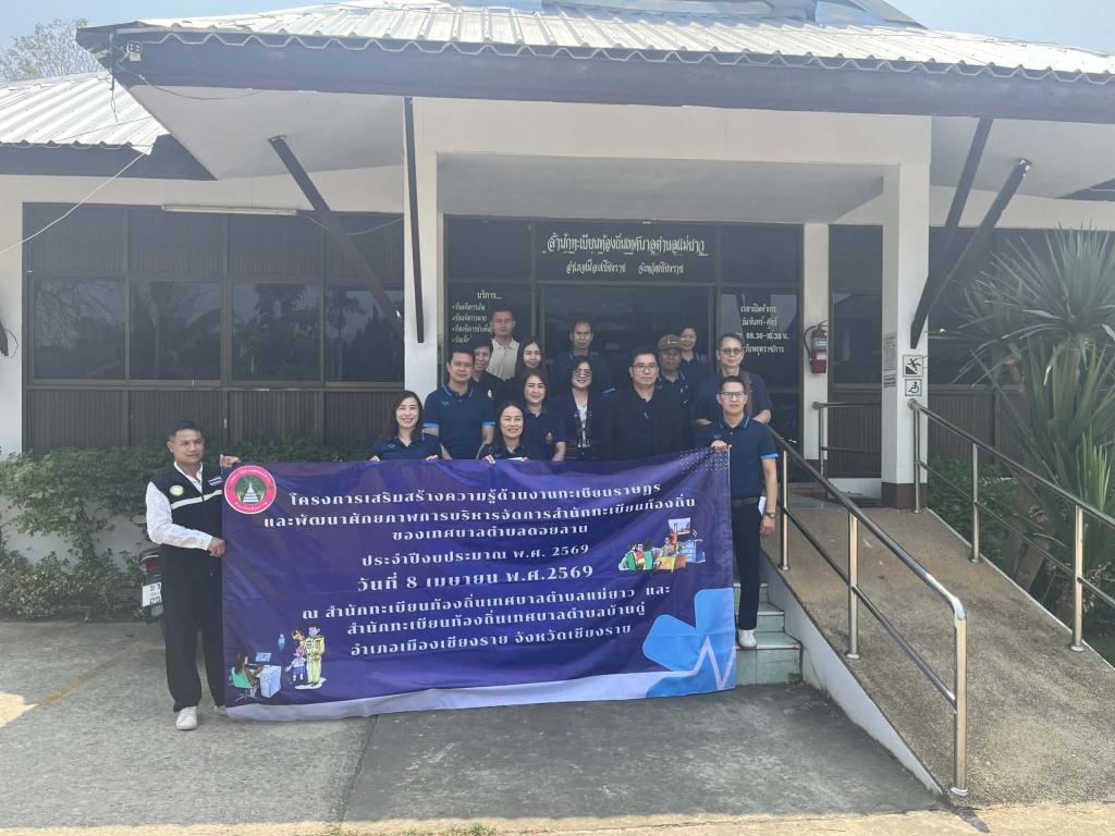 วันที่ 8 เมษายน พ.ศ. 2569 คณะศึกษาดูงานจากเทศบาลตำบลดอยลาน นำโดยนายทรงฤทธิ์ อุ่นใจ พร้อมด้วยผู้บริหารและพนักงานเทศบาลตำบลดอยลาน ได้เดินทางไปศึกษาดูงานตามโครงการเสริมสร้างความรู้ด้านงานทะเบียนราษฎรและพัฒนาศักยภาพการบริหารจัดการสำนักทะเบียนท้องถิ่น ของเทศบาลตำบลดอยลานประจำปีงบประมาณ พ.ศ. 2569 ณ สำนักทะเบียนท้องถิ่นเทศบาลตำบลแม่ยาว และสำนักทะเบียนท้องถิ่นเทศบาลตำบลบ้านดู่ โดยมีวัตถุประสงค์เพื่อรองรับการถ่ายโอนภารกิจงานทะเบียนราษฎร จากสำนักทะเบียนอำเภอเมืองเชียงราย