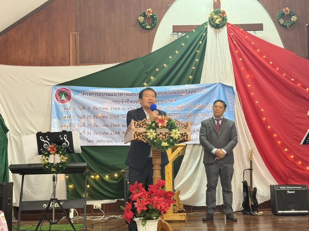 ?วันพฤหัสบดี ที่ 25 ธันวาคม 2568?? ?นายจำนงค์ ชัยชนะ นายกเทศมนตรีตำบลดอยลานพร้อมด้วยคณะผู้บริหารท่านรองประธานสภา นายธรรมนูญ ยามี และสมาชิกสภา ทต.ดอยลานเข้าร่วมโครงการอบรมแนวทางและการปฏิบัติตนตามหลักคริสต์ศาสนา ประจำปีงบประมาณ พ.ศ.2569 ?ณ คริสตจักรไทยปงอ้อโดยการจัดทำโครงการ ?มีวัตถุประสงค์เพื่อให้ผู้เข้าร่วมการอบรม ได้น้อมรำลึกถึงพระเยชูองค์ศาสดาในคริสต์ศาสนา , ได้ตระหนักและเห็นความสำคัญของหลักคำสอน ขององค์ศาสดา #เทศบาลตำบลดอยลาน #งานประชาสัมพันธ์เทศบาลตำบลดอยลาน