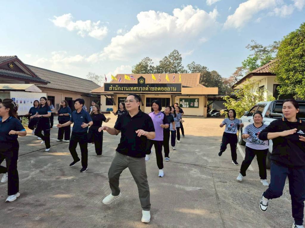 วันที่ 18 กุมภาพันธ์ 2569 เวลา 15.30 น.เทศบาลตำบลดอยลาน ได้จัดกิจกรรมโครงการออกกำลังกายเพื่อสุขภาพ ตามนโยบายจังหวัดเชียงราย ทุกวันพุธ ประจำปีงบประมาณ พ.ศ.2569 ด้วยการเต้นแอโรบิก นำโดยรองปลัดเทศบาลตำบลดอยลาน รองปลัดรัตนา อารีย์โดยกิจกรรมดังกล่าวจัดขึ้นโดยมีวัตถุประสงค์เพื่อส่งเสริมให้บุคลากรของรัฐได้ออกกำลังกายอย่างเหมาะสมและต่อเนื่องสร้างเสริมสุขภาพที่ดี ทำให้เกิดความสนุกสนานและสร้างสัมพันธ์อันดีในหน่วยงานและตอบสนองนโยบายของจังหวัดเชียงรายเป็นเมืองแห่งสุขภาพ (Chiang Rai Wellness City) และเชียงรายที่ได้รับเลือกให้เป็นเมืองกีฬา (Sports City) โดยมีคุณเดือนเพ็ญ จันต๊ะนาเขต เป็นผู้นำเต้นแอโรบิก